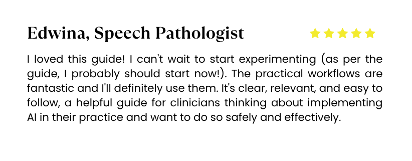 The Clinicians’ Guide to AI is your no-fluff, ethically grounded guide to confidently integrating AI into your practice—without the overwhelm or risk.Â